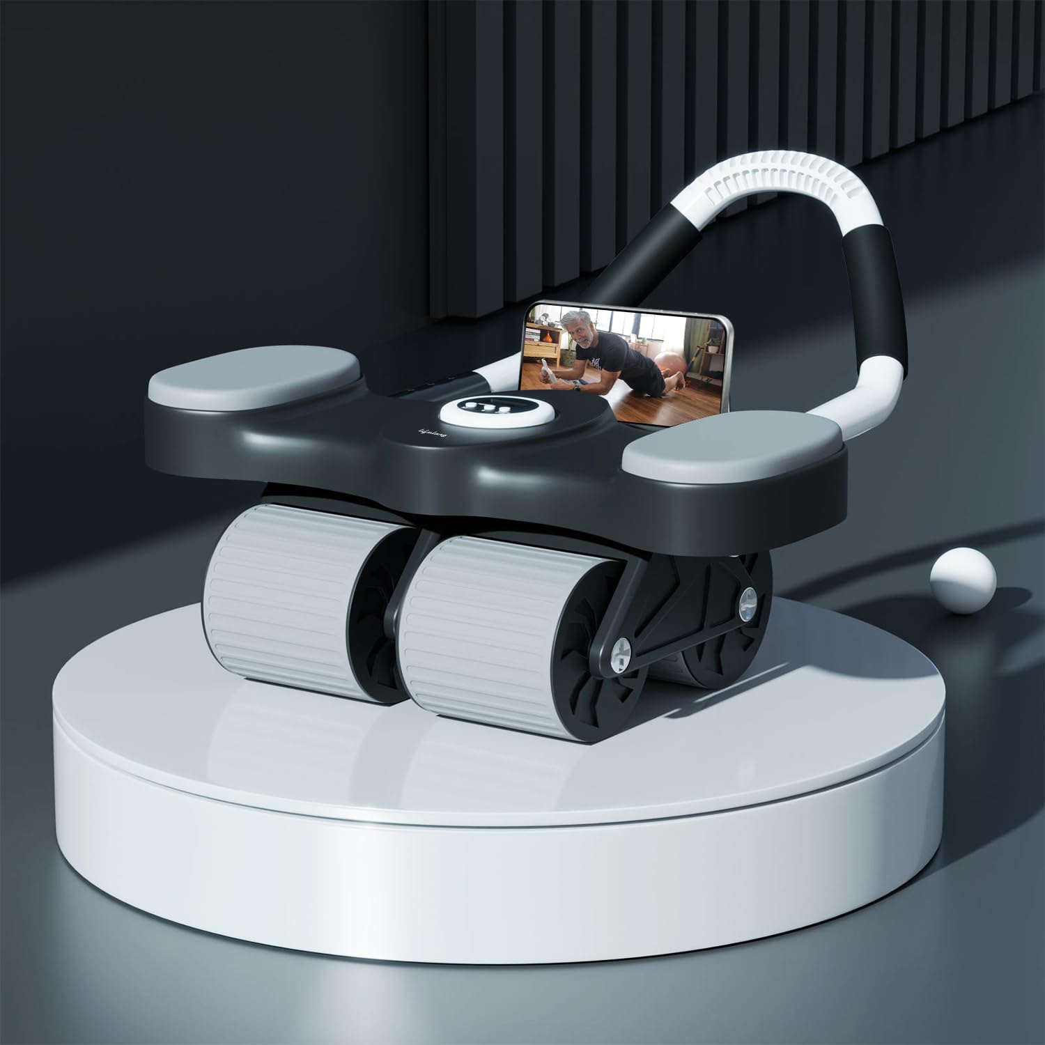 Ab Roller with Automatic Rebound, Elbow Support, Timer & Mobile Holder, Dual Non-Slip Wheels, Professional Core Strength Training Ab Roller, Home Gym Core Trainer with Knee Pad – Black