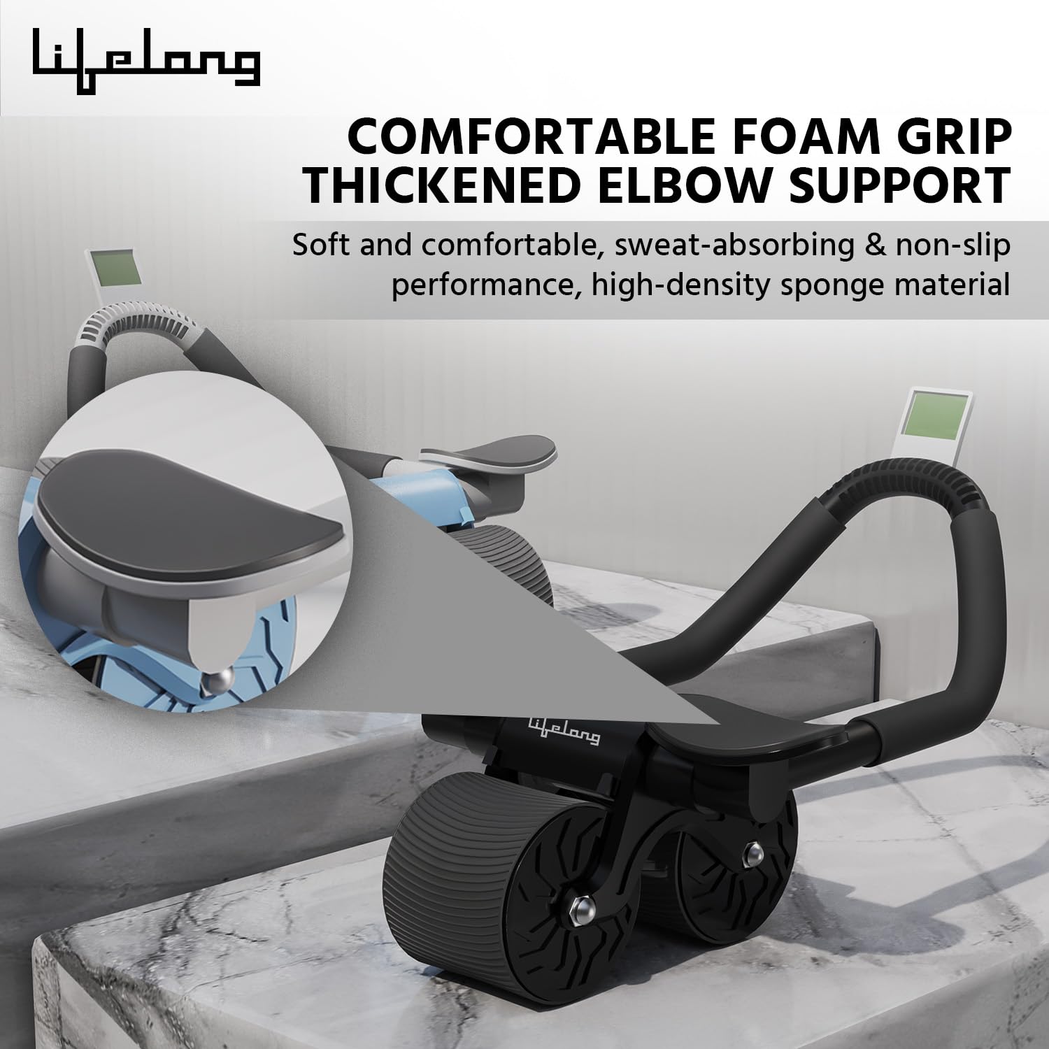 The Lifelong AB Roller Wheel featuring elbow support design, which reduces lateral movement and prevents arm compensation, offers improved stability during workouts.