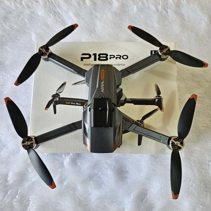 Product description P18 PRO DRONE Product Information :- The P18 Pro Drone boasts an impressive 8K GPS HD triple camera system, enabling you to capture breathtaking aerial shots and videos with remarkable clarity. And the P18 Drone's camera setup will not disappoint. Product Specification :- -Aerial photography folding drone -Color: Black/Grey -Drone size: -Folded: 13.5cm * 13.5cm * 15cm -Open: 28cm*28cm*7cm -Material: plastic metal electronic components -Receiving frequency: 5G -Number of channels: 6-channel 6-axis gyroscope -Appearance: folding drone Battery motor parameters: Charging method: USB data cable charging Remote control mode: left hand throttle (right hand direction) Speed level: multi-speed adjustment Remote control battery: AA*3 need to be purchased separately. Camera data: Resolution: 4K Angle: electric adjustment: 540° Transmission signal: WiFi transmission. Features :- 1. The front lens is placed with wide-angle 8K high-definition WIFI, and the optical flow high-definition lens at the bottom can switch the camera angle. The servo gimbal design increases stability, adding EIS electronic anti-shake, the picture lines are clearer. 2. Altitude-fixing function It has the function of altitude-fixing mode, optical flow positioning and fixed-point function, and the flight is stable. 3. Customize the route. You can draw the picture you want to fly on the APP. 4. APP mobile phone control, one-key return, headless mode, up and down, forward and backward, left and right side flight. 5. Gesture camera, optical flow positioning, brushless motor, super long battery life, obstacle avoidance gimbal components, no collision to stop when encountering obstacles.