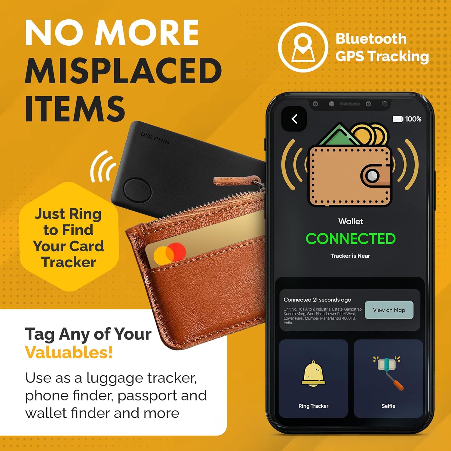 - Efficient Smart Tracker - Track your luggage, wallet and other valuables with our card tracker device. This (Bluetooth Low Energy) BLE-based slim tile card for wallet gives a GPS live location when your mobile device is within the tracker’s range. The DOLPHIN phone tracker app shows the last seen location when out of range.